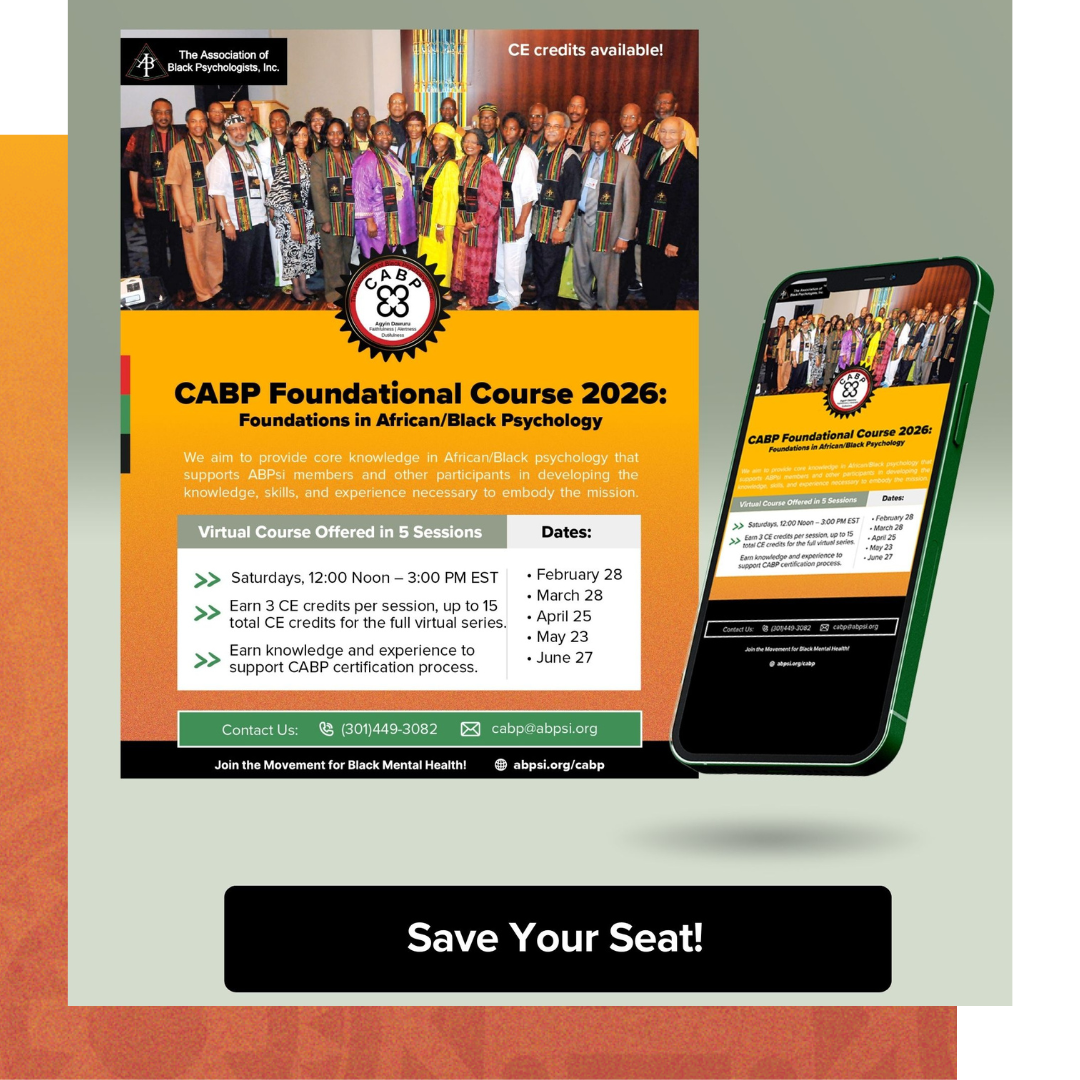 CABP’s recommendations and rationale regarding praxis development for certification ensures that certified professionals are reasonably qualified to offer culturally congruent services and education to populations of African/Black ancestry. In order to be authentic to this science and the mission of ABPsi, the CABP recognizes, operationalizes and quantifies the relative contributions of the past, present and future that reflect authentic African episteme and praxis. CABP evaluates culturally congruent skills, analytical approaches, applications and restorative processes that promote healing and development in the African/Black community. The Association of Black Psychologists (ABPsi) has been at the forefront of African-centered cultural competence and scholarly activism since its inception in 1968. The fundamental task and challenge of CABP certificants is to uphold ABPsi’s “mission and destiny as the liberation of the African Mind, empowerment of the African Character, and enlivenment and illumination of the African Spirit.”